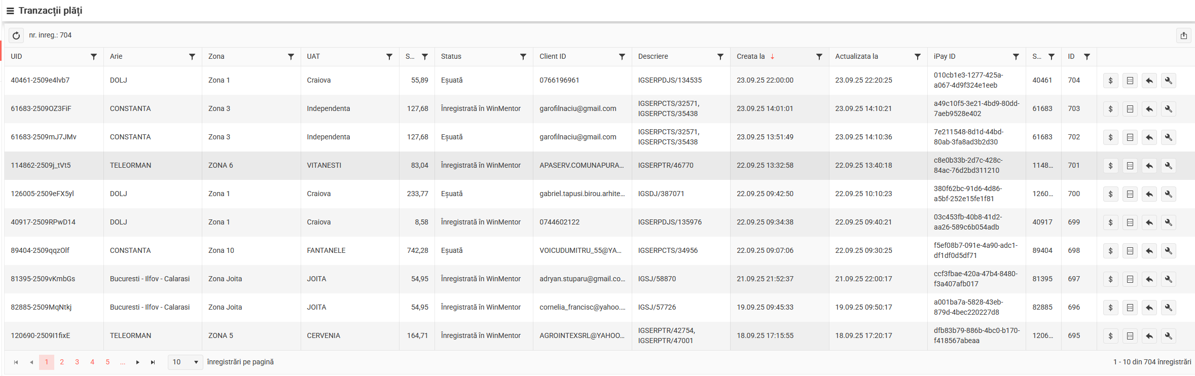 Acest panou permite vizualizarea, filtrarea, ordonarea si exportul tuturor tranzactiilor efectuate prin intermediul platformei.